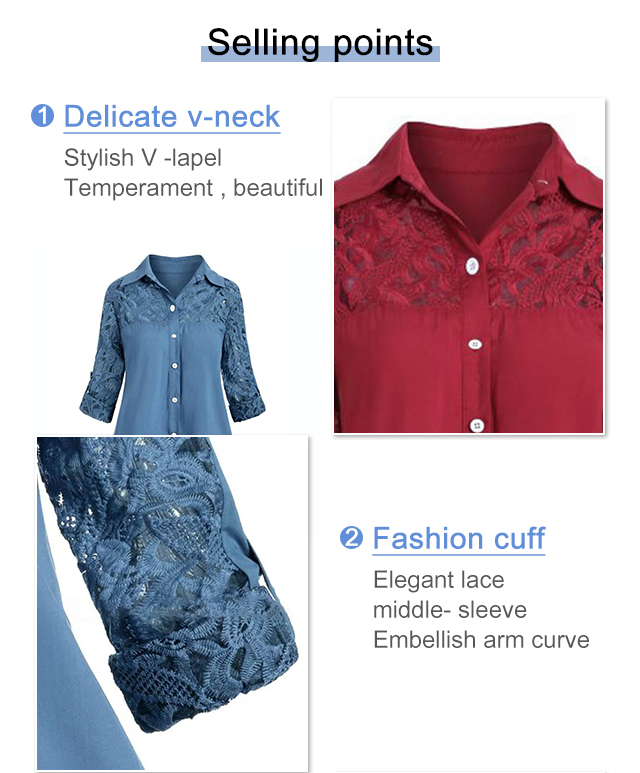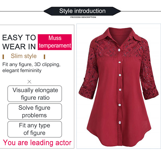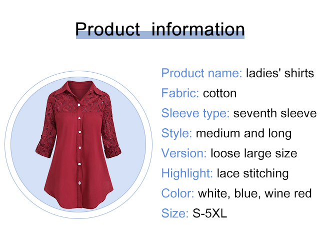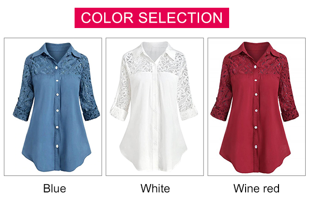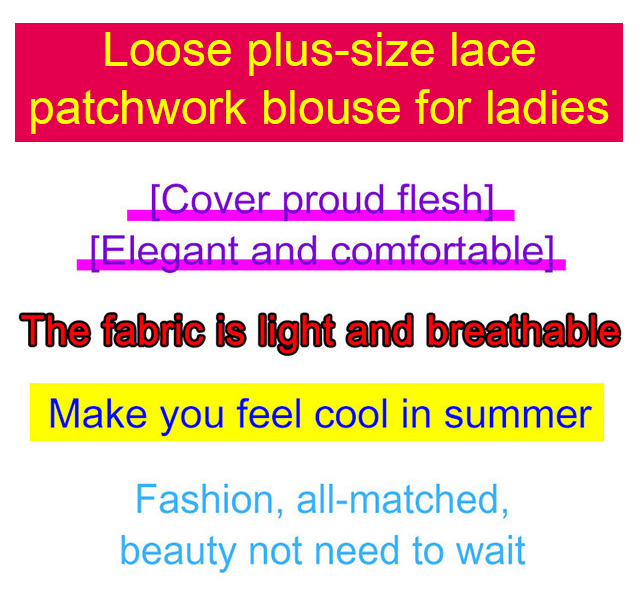 Loose plus-size lace patchwork blouse for ladies. Light and breathable fabric, make you feel cool even in hot summer, 3 colors to choose!!