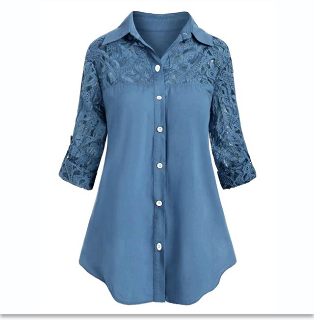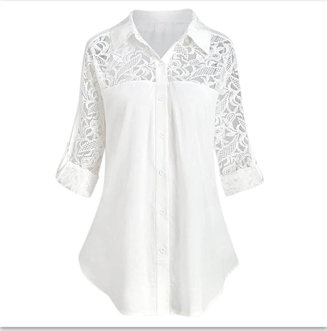 Loose Large-size Lace Patchwork Blouse For Ladies